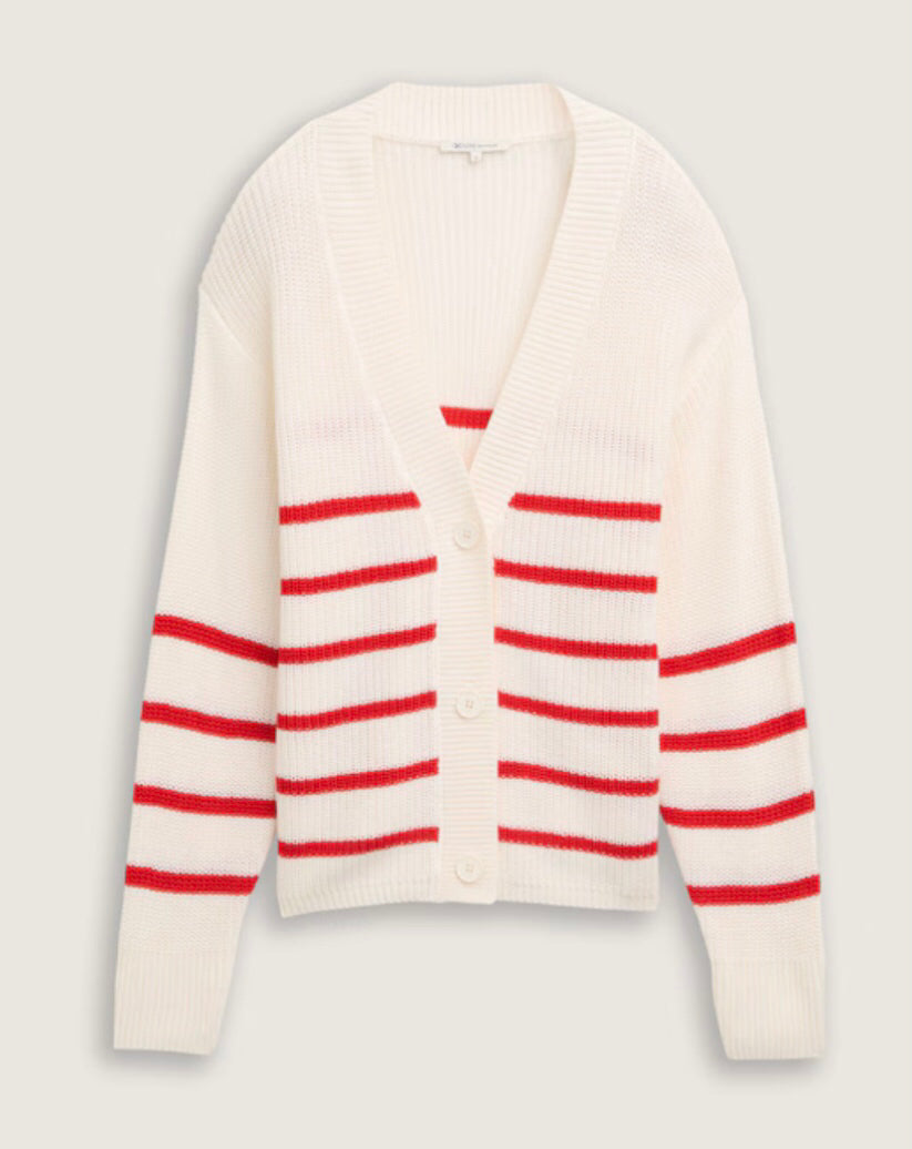 TOM TAILOR V-NECK CARDIGAN - RED/CREAM