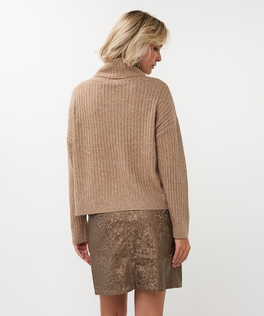Comfortable wide rib turtleneck made of 53% cotton, 25% acrylic, 20% polyester and 2% spandex.
